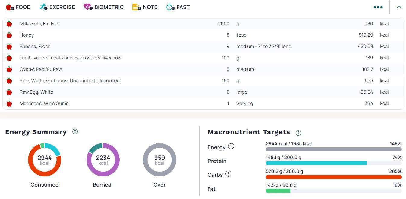 采用低碳水饮食(每天 <150 克)时,我的动力和恢复都很慢。当我每天摄入 250-300 克左右的碳水化合物时,我的动力就会大大增强。所以我想,也许越多越好。我要每天摄入 500-600 克碳水化合物,为了防止热量摄入过高,我必须减少摄入脂肪。