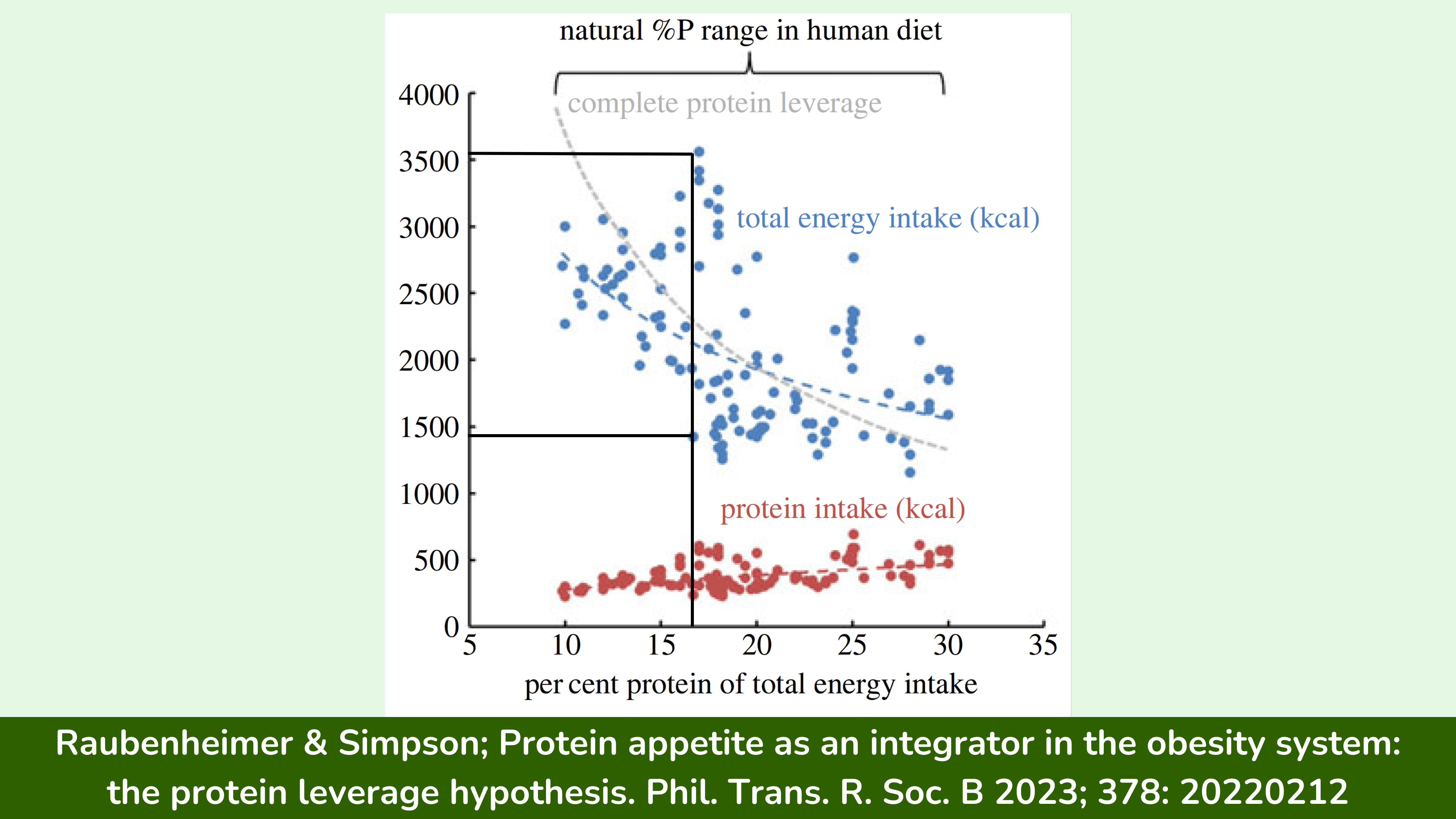 正如我在上一篇博客文章中更详细地解释的那样,我们在一顿饭中需要吃多少卡路里才能感到饱腹,这在很大程度上与这顿饭的蛋白质百分比、纤维含量和能量密度有关。一般来说,如果一顿饭的蛋白质百分比较高、纤维含量较高、能量密度较低,那么它每卡路里摄入的饱腹感就会更强。